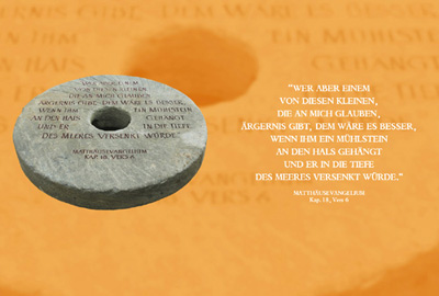 Meine Ohnmacht, die ich in Gesprächen mit Betroffenen spürte, und das inakzeptable Verhalten des Bischofs, inspirierten mich schließlich dazu, mich auf die Suche nach einem möglichst großen Mühlstein zu machen, um auf diesen das bekannte Zitat aus dem Matthäusevangelium einmeißeln zu lassen.