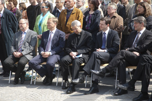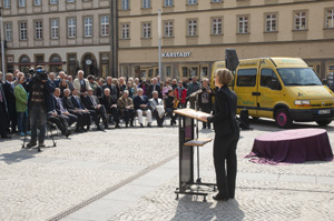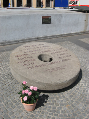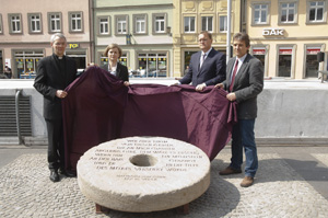 ![]() ![]() Fotos: Frank Hügle, Karlsruhe Enthüllung des "Mahnenden Mühlsteins" v. l. n. r.: Erzbischof Prof. Ludwig Schick, Gleichstellungsbeauftragte Gabriele Kepic, Oberbürgermeister Andreas Starke und Johannes Heibel von der Initiative ... e. V. |