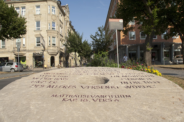 Der 'Mahnenden Mühlstein' erinnert an die Schuld, die die Täter mit sich tragen und die ihnen niemand abnehmen kann.