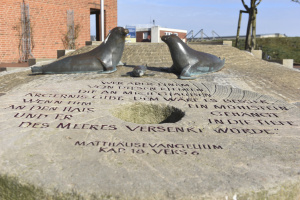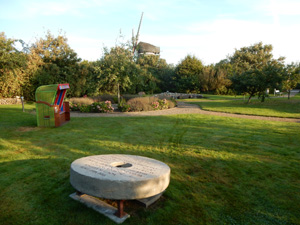"Mahnender Mühlstein" im Apfelgarten der Wrixumer Mühle
