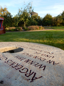 "Mahnenden Mühlsteins" im Apfelgarten neben der