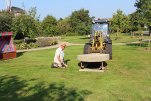 Arbeiter der Gemeinde Wrixum beim Versetzen des