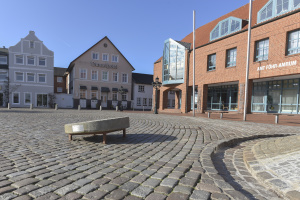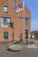 "Mahnender Mühlstein" vor dem Rathaus in Wyk