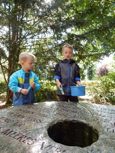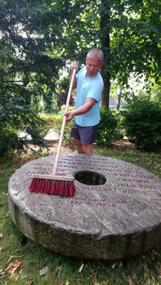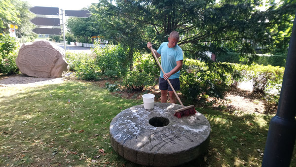 Reinigung des "Mahnenden Mühlsteins", Juli 2018