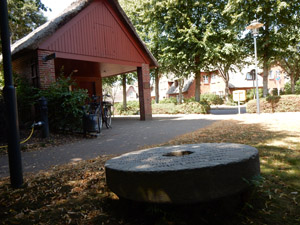 "Mahnender Mühlstein" auf Dorfplatz von Alkersum