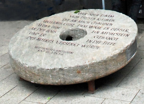 Aktion „Mahnender Mühlstein“ Auftaktveranstaltung Einladung: hier Filmbericht von TV-Hildesheim: hier "Mahnender Mühlstein erinnert an die Last der Opfer sexueller Gewalt", Pressebericht über die Veranstaltung |
