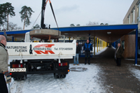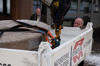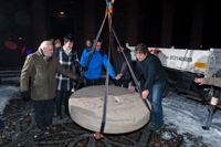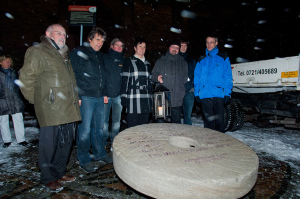 Abholung des "Mahnenden Mühlsteins" an der Europäischen Schule Karlsruhe | |