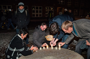 Niederlegung des "Mahnenden Mühlsteins" vor St. Stephan | |