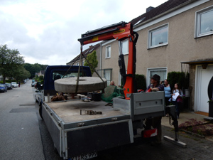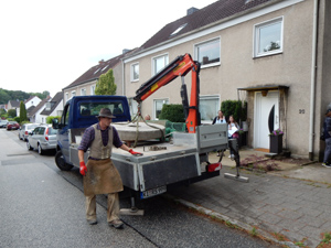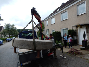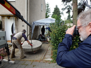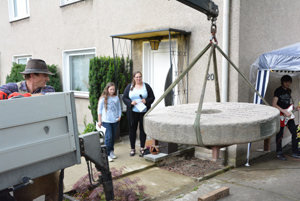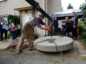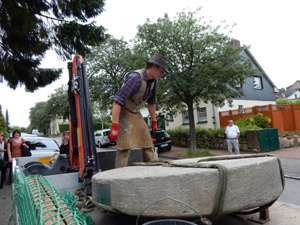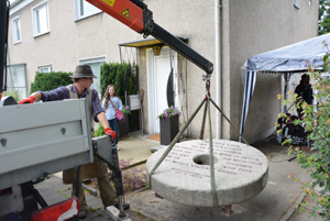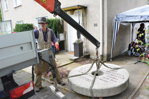 Versetzung des Mahnenden Mühlsteins durch einen Mitarbeiter des Steinmetz- und Natursteinbetriebs Rössler & Schwarz, Prinzenstrasse 20 in Kiel |