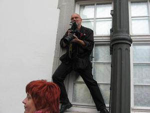 Unser Fotograf Frank Hügle bei einer waghalsigen Einlage. Im Vordergrund seine Ehefrau Yazede Weiler. Sie sichert ihn ab. |