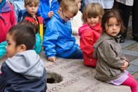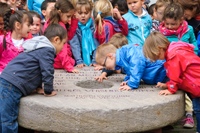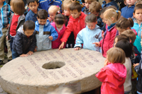 ![]() ![]() ![]() Die Kinder der KITA St. Kastor beim Erforschen des Mühlsteins. |