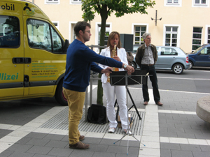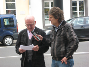 Johannes Heibel erklärt die Hintergründe der Aktion und erinnert an die vor 20 Jahren ermordeten Kinder Shari Weber (Weißenthurm) und Stefanie Spieß (Peterslahr/ VG Flammersfeld).