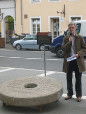 Wolfgang Hartmann hier bei seinem Grußwort am "Mahnenden Mühlstein".