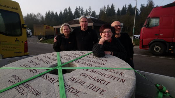 weitere Informationen geben, wo und wie der Mühlstein abgeladen wird.