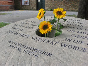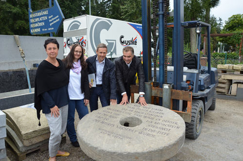 ![]() v.l.n.r.: Claudia Maruniak, Inhaberin des Steinmetzbetriebs Thomas Scheinpflug (Rostock), Sylvia Pahl, Initiative gegen Gewalt ..e. V. (Lübeck), Stephan Gustke, Gustke Logistik (Rostock) und Gerd Rapior, Media-Concept (Kiel) |