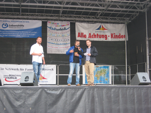 "Mahnender Mühlstein" trifft am 3.9.2015 in Rostock ein | |||||||||||||||||||||||||||||||||||||||||||||