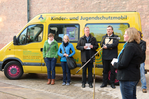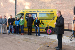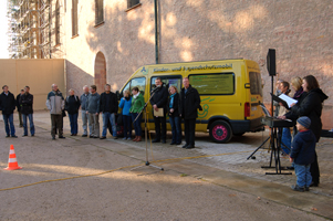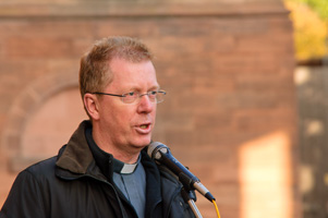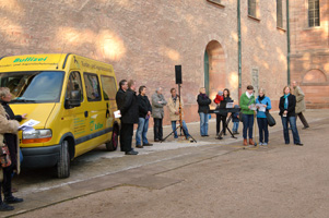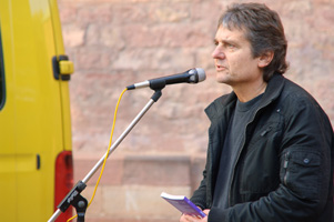 Der Vorsitzende der Initiative, Johannes Heibel, erläutert die Hintergründe zur Aktion und bedankt sich bei allen Mitwirkenden. | |