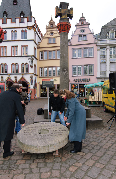 "Mahnender Mühlstein - Koloss auf Hauptmarkt symbolisiert die Last von Missbrauchsopfern", Trierischer Volksfreund, Seite 10, Autor Rolf Seydewitz, 6.3.2012