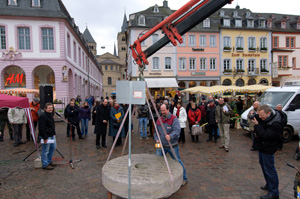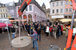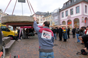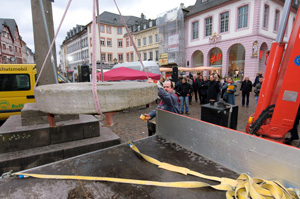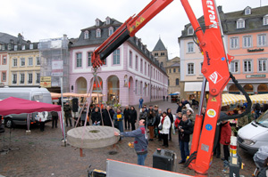 Versetzung des "Mahnenden Mühlsteins" durch Steinmetz Jürgen Meyer aus Trierweiler |