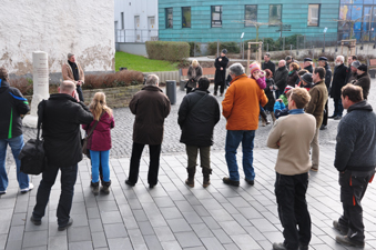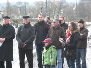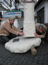 Bildhauer Bruno Johannes Harich erläutern die Hintergründe zur Aktion.
