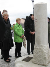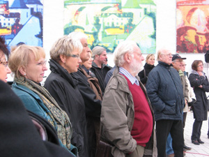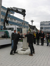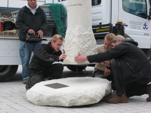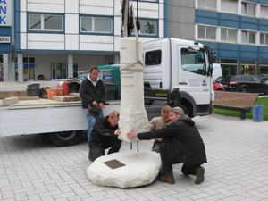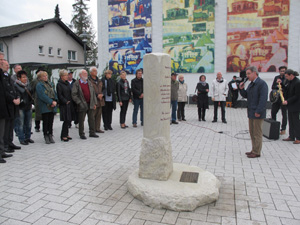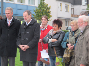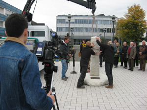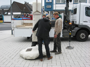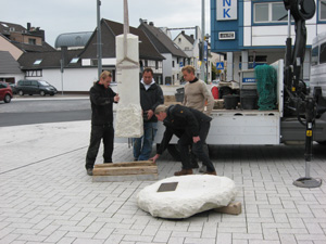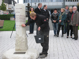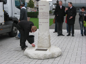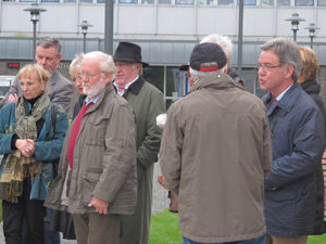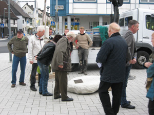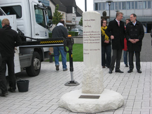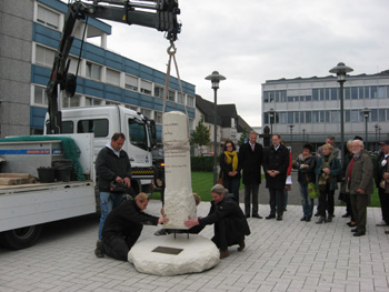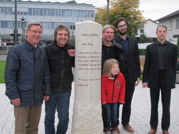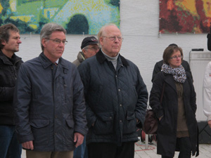 v.l.n.r.: Bürgermeister Wolfgang Röger, Johannes Heibel, Bildhauer Bruno Johannes Harich