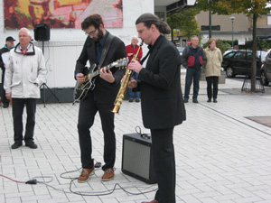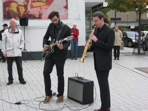 Nils Schönerstedt (Saxophon) und Cem Alkan (E-Gitarre) von der Musik- und Kunstschule der Stadt Lohmar beeindruckten die Zuhörer mit einfühlsamer Musik.