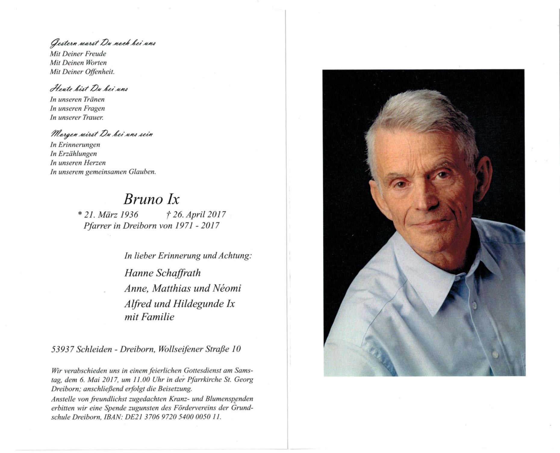 Wir trauern um den Schirmherrn unseres Kinder- und Jugenschutzmobils. Der Tod von Pfarrer Bruno Ix macht uns alle sehr betroffen. Er verfügte über ein hohes Maß an Einfühlungsvermögen und war ein vorbildlicher Mensch, Adoptivvater, Freund und Seelsorger. Im Namen der Initiative Johannes Heibel |