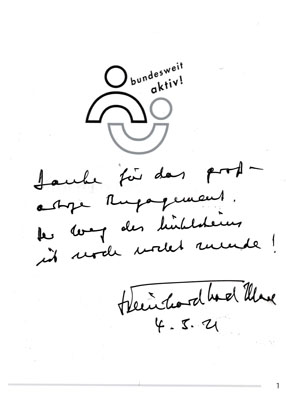 "Er rollte bis nach Rom zum Papst" Kommentar von Michael Dietz, lesen: hier Dank von der apostolischen Nuntiatur in Deutschland: hier
