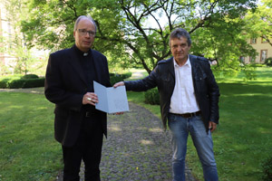 Am 30.3.2021 übergaben Monika und Johannes Heibel (Vorsitzender der Initiative gegen Gewalt und sexuellen Missbrauch an Kindern und Jugendlichen) Fotos: Ann-Christin Ladermann, Angestellte des Bistums |