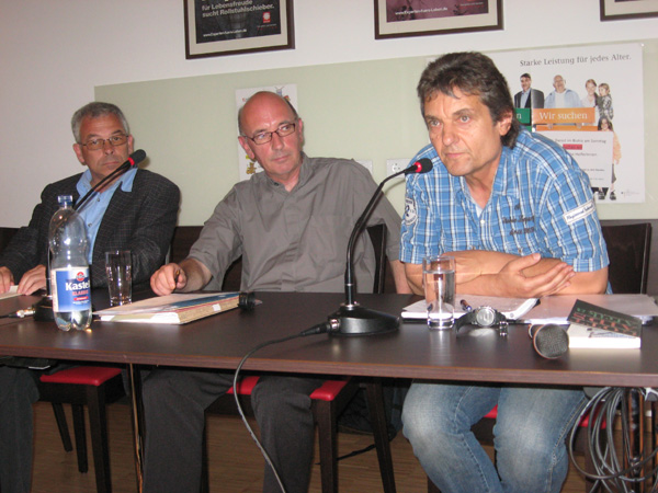 Das Podium v.l.n.r.: Prof. Dr. Frank Löhrer, Arzt und Psychotherapeut, Pfarrer Heiner Schmitz, Leiter der Hauptabteilung Pastoralpersonal des Bischöflichen Generalvikariates Aachen und Johannes Heibel, Vorsitzender der Initiative gegen Gewalt... e.V.