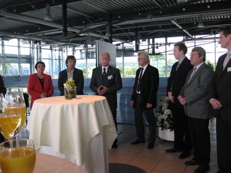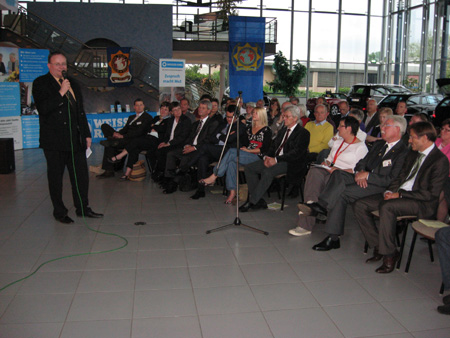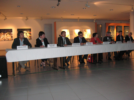 Vorstellung der Veranstalter und der anwesenden Podiumsteilnehmer: Herr Horst W. Bichl (dritter von links), Vizepräsident der Internationalen Police Association (IPA), Deutsche Sektion e. V., übernimmt dabei die Moderation |