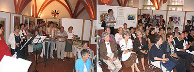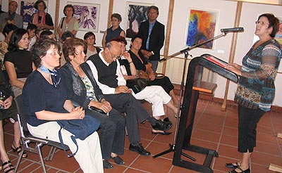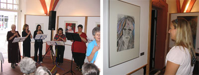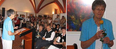 "Ich war von der Geschichte und der Person der Künstlerin sehr betroffen. Die Bilder machen auf ein großes Problem aufmerksam", sagte Schwester Lea Ackermann, Gründerin der Initiative "Solwodi, ein Hilfswerk für Frauen in Not". Während ihres eindrucksvollen Vortrags nahm sie plötzlich eine gelbe Rose in ihre Hände, um sie Sekunden später völlig zu zerstören. Sie wollte damit den Besuchern der Vernissage sehr deutlich vor Augen halten, was mit einem Kind passiert, wenn es von einem Erwachsenen sexuell missbraucht wird. |