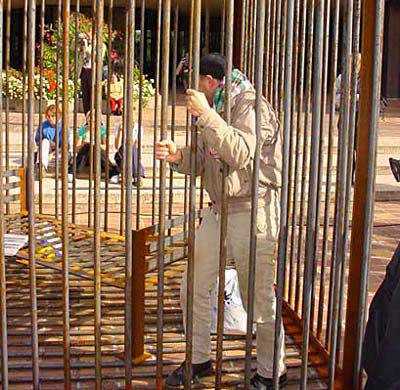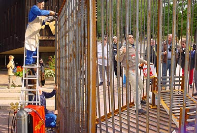 Woche steht ein stählerner Käfig vor dem