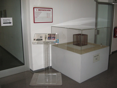 Ausstellungszwecke kann das Modell des Mahnmals (Maßstab 1:10) ausgeliehen