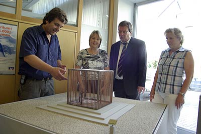 Ausstellungszwecke kann das Modell des Mahnmals (Maßstab 1:10) ausgeliehen