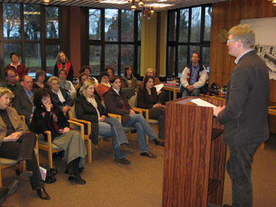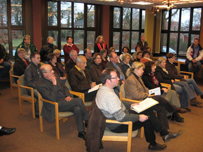 Rund 30 Besucher/innen der Vernissage hatten sich im Sitzungssaal versammelt. |