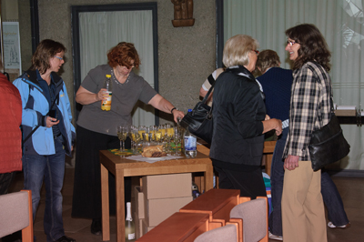 Interessierte Besucherinnen beim Betrachten der Bilder. |