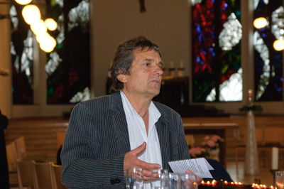 Johannes Heibel führt durch die Ausstellung und klärt die Besucherinnen und Besucher über die Hintergründe auf. |