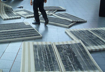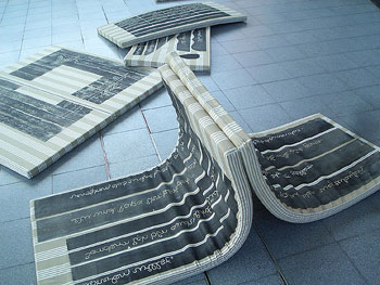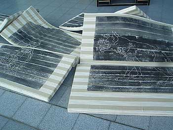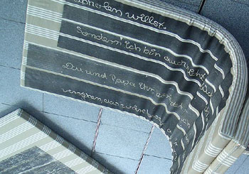Die Matratzen, auf denen der gesamte Brief und die Illustration abgedruckt sind, übernehmen die Position der Eisschollen im Fiedrich-Gemälde. |