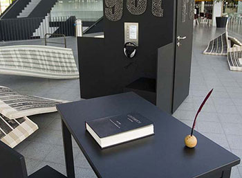 besteht für den Besucher die Möglichkeit, eigene Gedanken zu der Installation und zum Thema Missbrauch aufzuschreiben. |