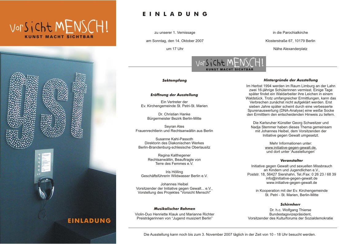 Verleih der Ausstellung über die Initiative gegen Gewalt: Tel. 0 26 23 / 68 39 © 2007 - Initiative gegen Gewalt und sexuellen Missbrauch an Kindern und Jugendlichen e.V.